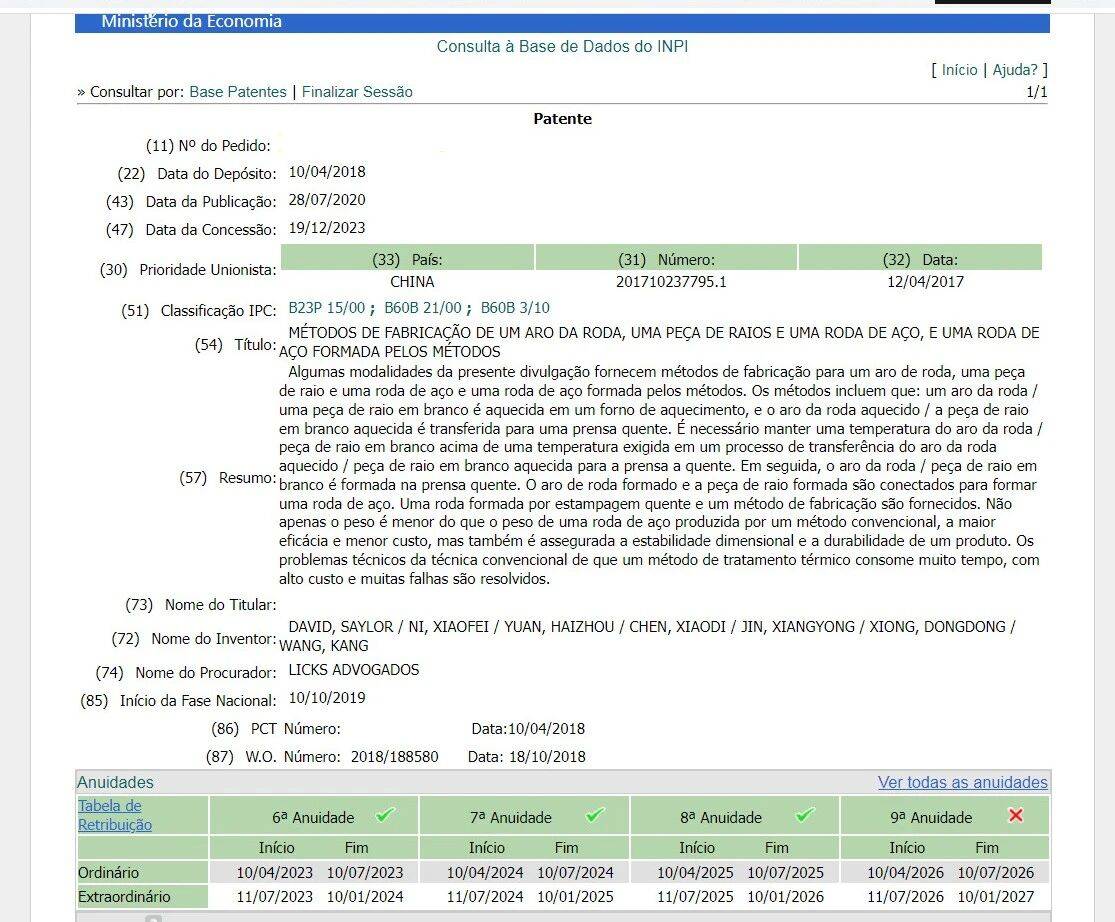 网站盘查专利的功令状况和年费缴纳音讯专利权人可通过巴西工业产权局的官方。