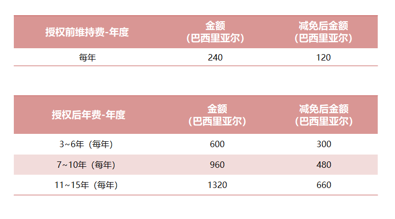 有极少用度减免程序巴西针对特定情景。如例,及适应必定前提的幼微企业对待熏陶机构、科研机构以,或许享福必定比例的扣头正在申请专利年费缴纳时。如上图所示减免金额,请流程可筹商咱们完全减免前提和申。